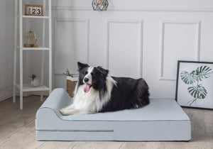 Details: KOPEKS x large 7'' Orthopedic Memory Foam Dog bed with 3'' Pillow: KOPEKS introduces its superior quality 100% Orthopedic Memory Foam Dog bed with a 3” pillow and double layer protection: 1) waterproof removable liner covers the memory foam mattress and 2) a soft, plush Suede cover with an Anti-Slip Bottom to comfortably top it off. This memory foam bed is orthopedic grade for increased support and ultimate comfort. It will not flatten overtime. Similar to therapeutic foam found in high end mattress stores. The KOPEKS x large 7” Orthopedic Memory Foam Dog bed with 3” pillow can relieve your pet’s aches and pains. It is great for pets with arthritis, hip dysplasia, joint and muscle stiffness or simply to pamper your pooch that so much deserves the best sleep quality.